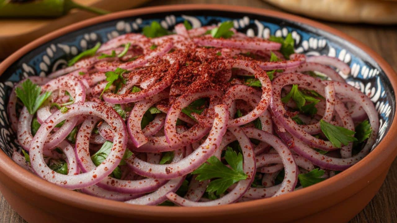 يتم تحضير السلطة في المطبخ التركي بمكونين رئيسيين لوصفة بديل الشاورما وهما السماق والبصل، وذلك لتسهيل هضم اللحوم الموجودة في الوصفة.