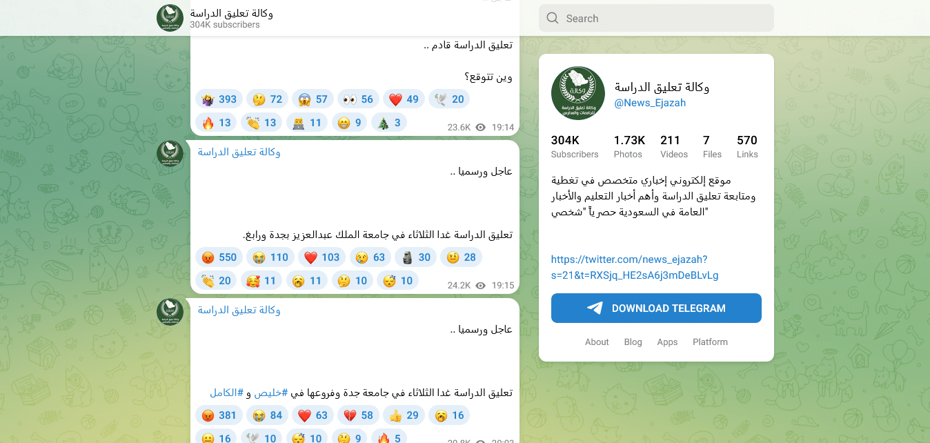 أعلنت إدارة تعليم جدة في المملكة العربية السعودية تعليق الدراسة غدا الثلاثاء جدة في جميع المدارس التابعة لمحافظات جدة ورابغ وخليص، على أن تستمر العملية التعليمية عن بعد من خلال منصة مدرستي جاء هذا القرار في إطار الحرص على سلامة الطلاب والطالبات وجميع العاملين في القطاع التعليمي، وذلك مع تزايد التحذيرات الصادرة بشأن الحالة الجوية غير المستقرة التي تشهدها المنطقة.