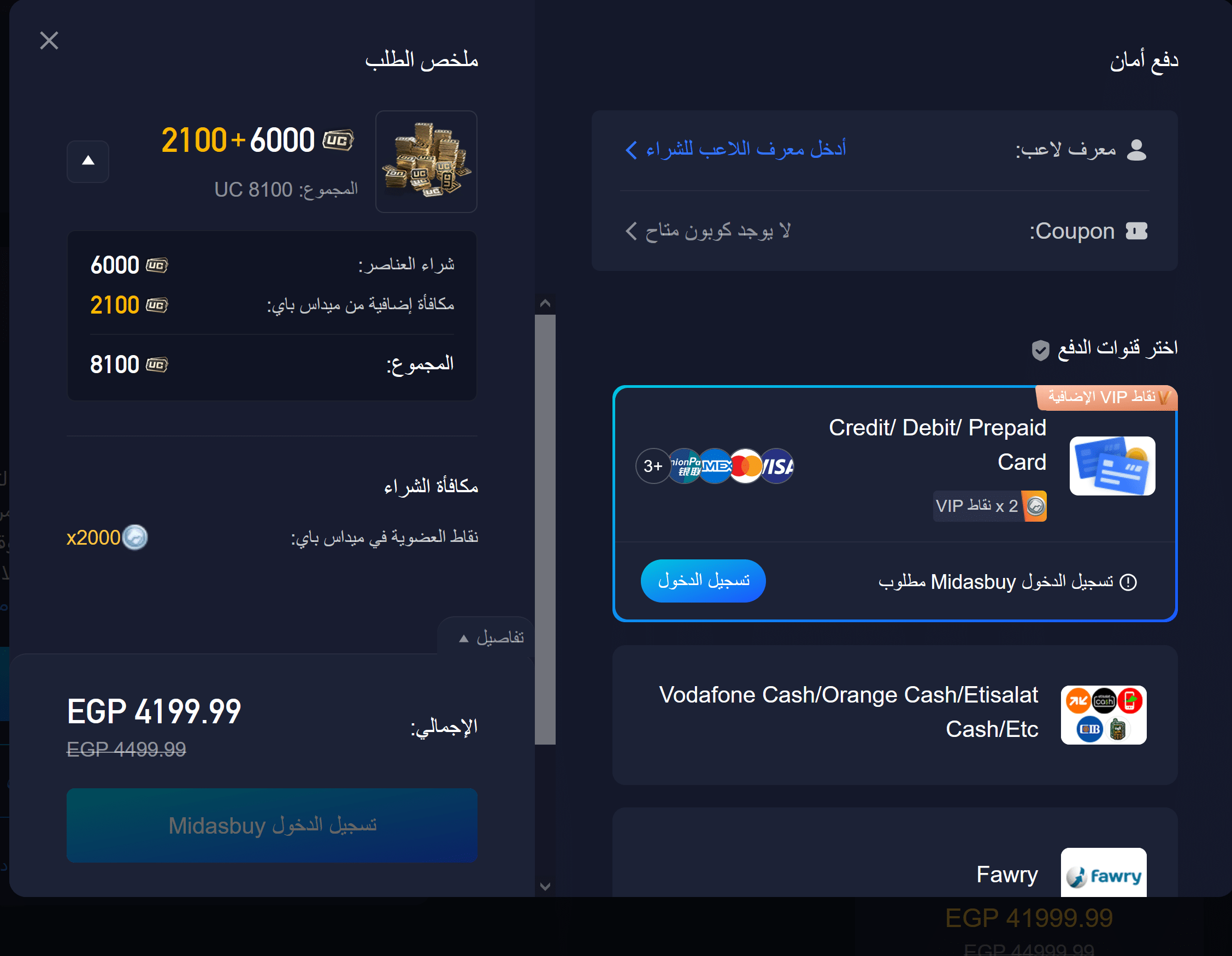 - بعد الأنتهاء من خطوات الدفع سوف يتم شحن الشدات في خلال ثواني لحسابك في اللعبه.