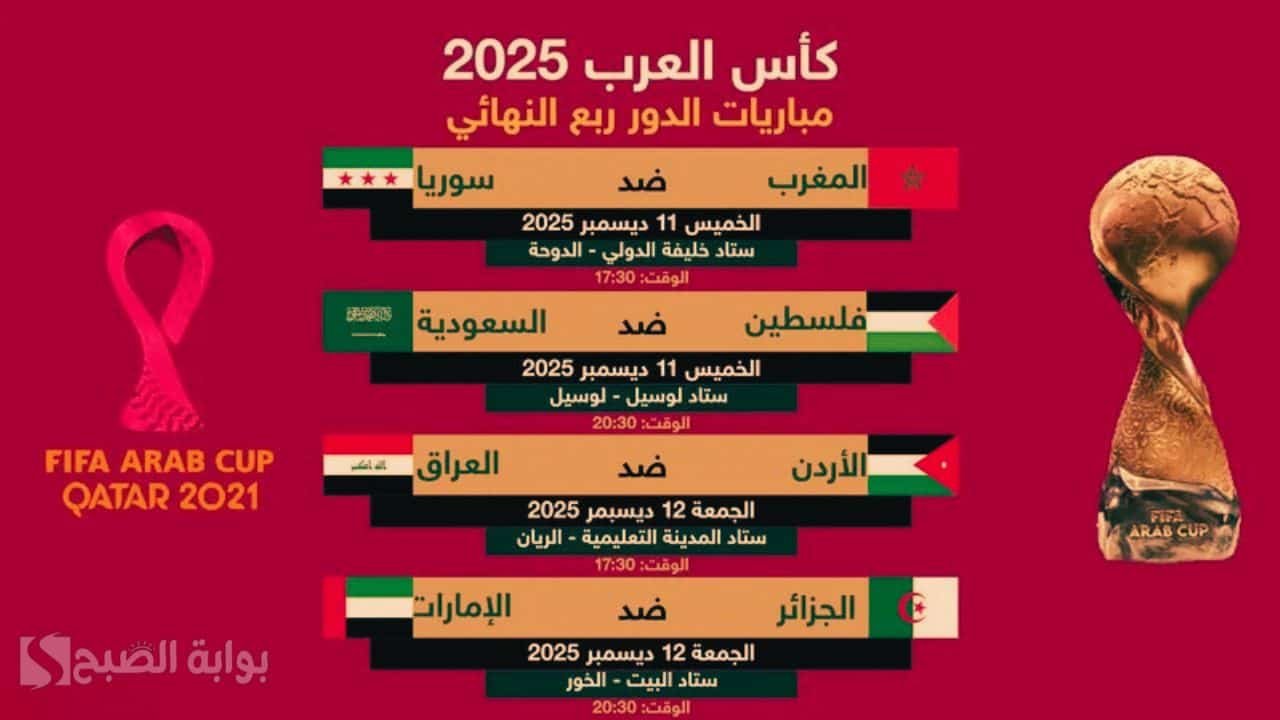 مواعيد مباريات ربع نهائي كأس العرب 2025
