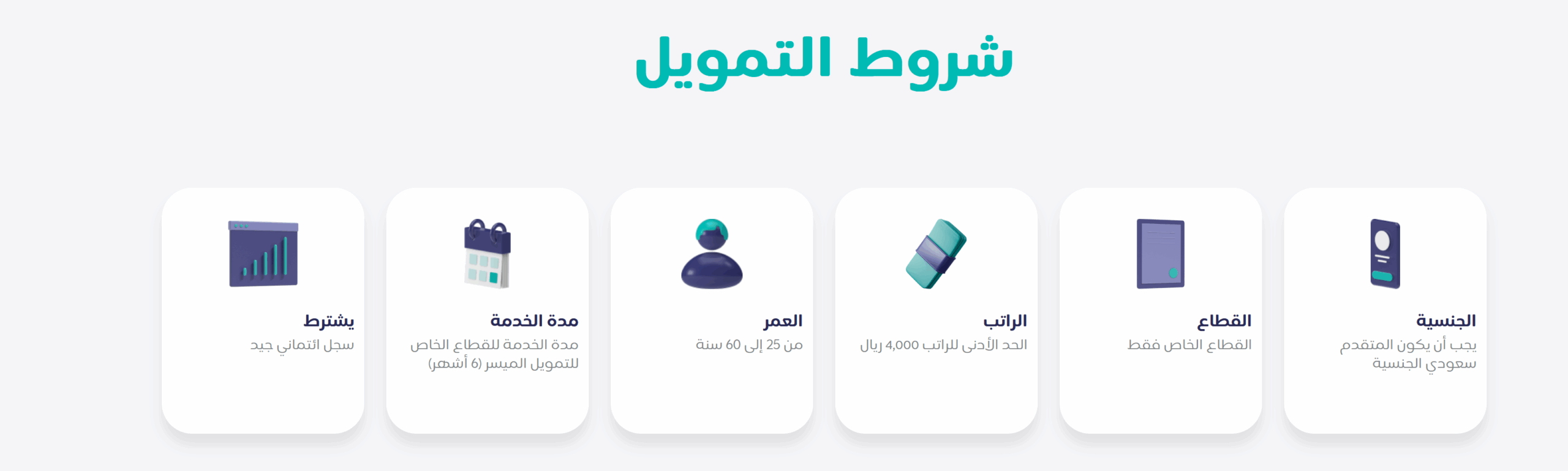شروط قرض شخصي للمتعثرين ماليًا عبر منصة إمكان ستكون كالتالي ويجب العلم بأن هذه الشروط خاصة بالتمويل الميسر فقط.