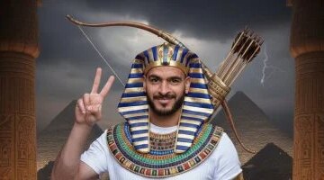 • حامد حمدان يرتدي زيا فرعونيا ويحمل القوس والسهم في افتتاح المتحف المصري الكبير