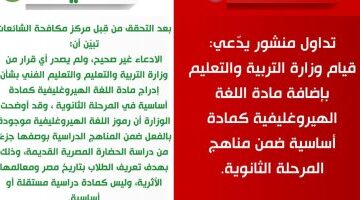 مركز مكافحة الشائعات ينفي تضمين الهيروغليفية ضمن مناهج الثانوية