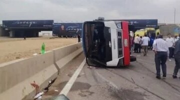 انقلاب أتوبيس الشباب والرياضة على طريق القاهرة العين السخنة وحالة السائقين