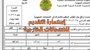 إلكترونياً pdf.. استمارة التقديم الخارجي وزارة التربية العراقية شروط تسجيلات الامتحانات الخارجية 2025-2026