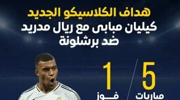 مبابي يواصل التألق بتسجيل ستة أهداف في خمس مواجهات الكلاسيكو